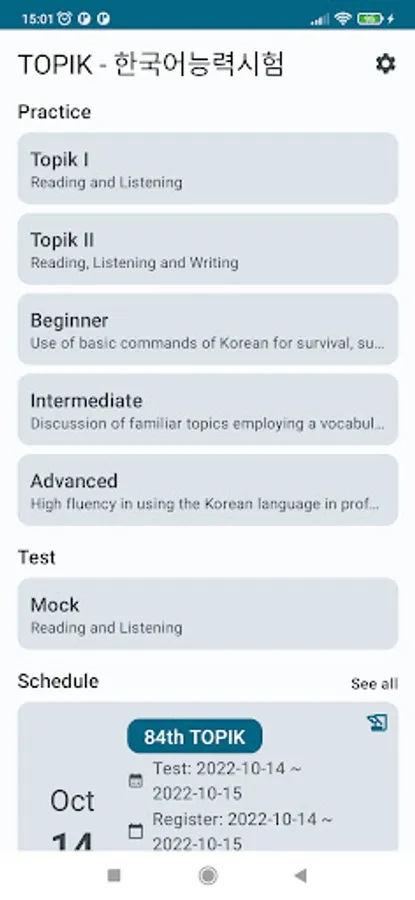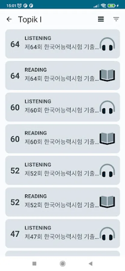 TOPIK Exam is a free app for self study Korean ability. This app include all level of TOPIK and divided by three part such as reading, listening and writing. Moreover, it has common words that is good for preparing for the real examination. After reviewing you can take a quiz to see your vocabulary.