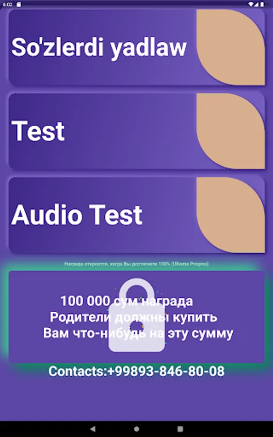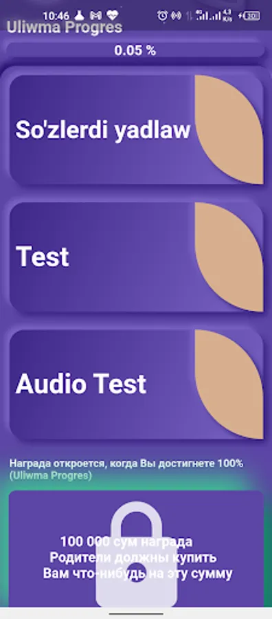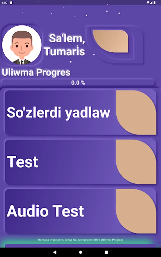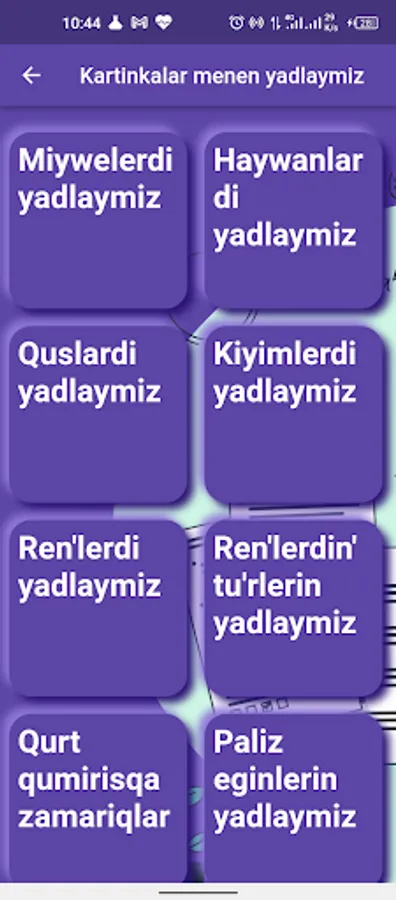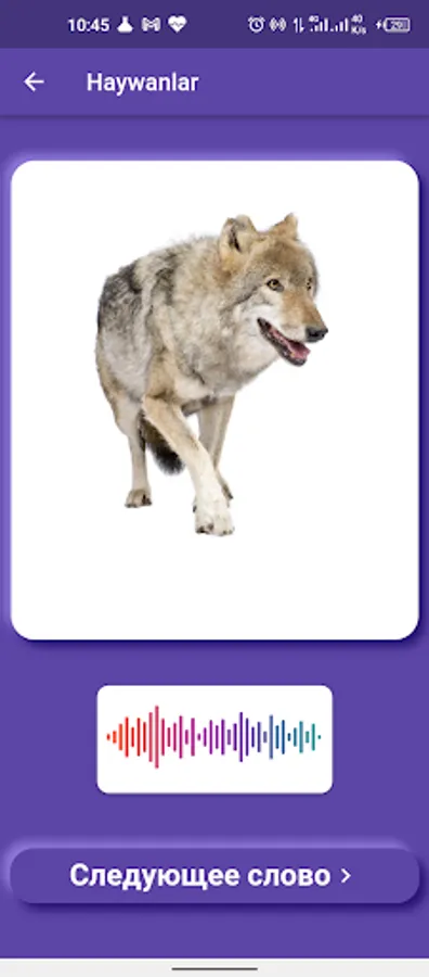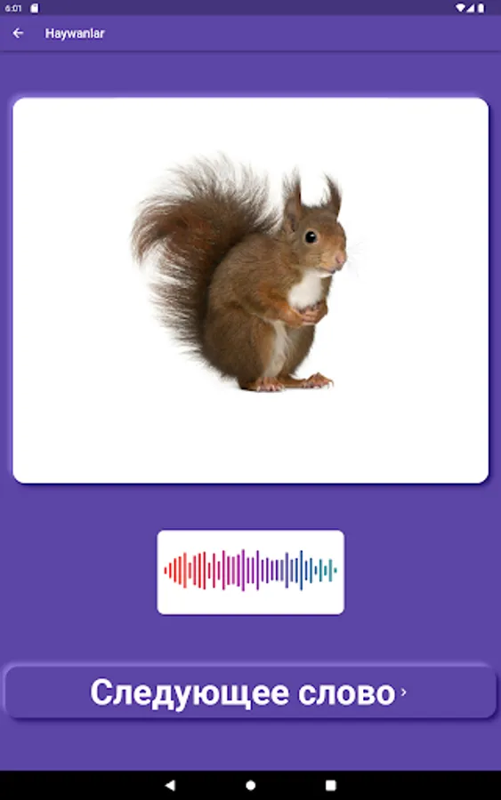 On this application you can learn words through pictures on different topics such as animals, clothes, colors and others. In addition, your achievement is shown as a percentage, and once you reach 100%, you will learn all the words. Moreover, there is also an audio test and a test with options.