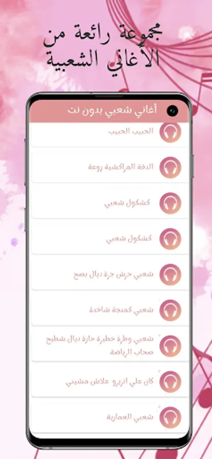 The "Popular Songs Without Net" application contains a huge collection of famous Moroccan folk songs by different traditional artists and singers, and it is updated regularly to add more new and updated songs. Users can enjoy a fun and varied listening experience as they can browse the music library and easily select the songs they want to listen to.