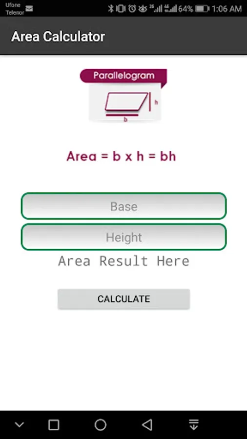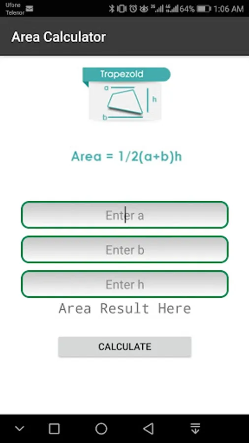 Area calculator will work efficiently and smoothly to calculate correct results out of your given area measurements of the shapes of your choice. Just take a look at the measurements of your area and enter and quickly find them with area calculator. Area calculator app is absolutely free and easy to use also.