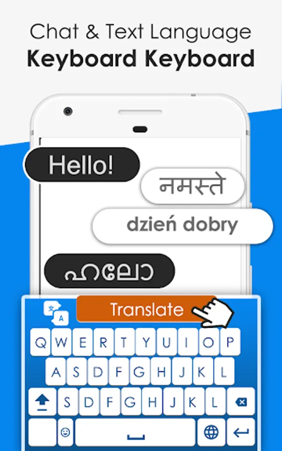 Chat translator has default English typing keyboard layout with English alphabets typing and will allows text translation in any language you want. You will have to type in english and this translator keyboard app will translate it into your selected language quickly. Its a best and simple translation app which makes you translate your chats into any language easily and enjoy a hassle free chat experience. Just a tap of a translate button will make your text translated in few seconds so try this translator app.