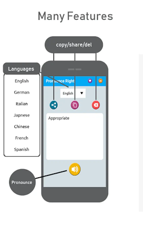 Pronounce it right - Word pronunciation app let you correctly pronounce the word you typed. It provides easy type and speak option in different sort of languages with other functionalities. Just type your text or copy text from anywhere, and paste it in the text box, after that tap on speaker button to listen what you have typed or pasted. Text to speech includes a lot of beautiful features like text input, copy text, clear the text box, sharing results and many other which you like to have in pronounce it right app for word pronunciation.