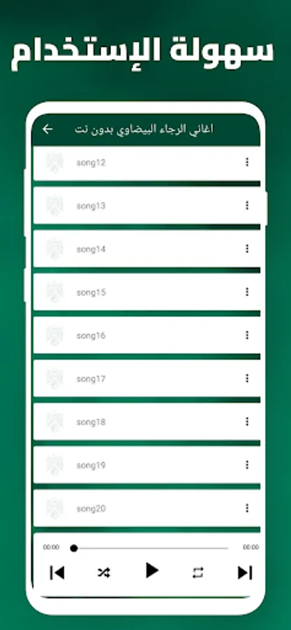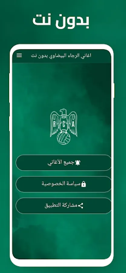 Enjoy a unique experience with the "Raja Casablanca Songs" application, as it takes you on an exciting journey through the world of the famous sports team, Raja Casablanca Club. This application is your ideal destination to enjoy the most beautiful songs and chants that express the enthusiasm and loyalty of the fans of Raja.