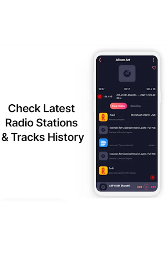 With Radio streaming and recording feature you can Add stations to favourites and share it with friends via messengers., Use drag and drop to reorder favourites, Check latest stations and tracks history, Listen radio before go to sleep with sleep timer (auto turn off) function, Wake up with favourite radio station instead of system alarm, Add station shortcut to home screen for quick access, and also Full Screen Radio player to display title and track information about currently tuned in station. Radio Recorder button allow you to record station and see all recording information like timing and file size. Recording will be automatically saved when you stop listening radio station.