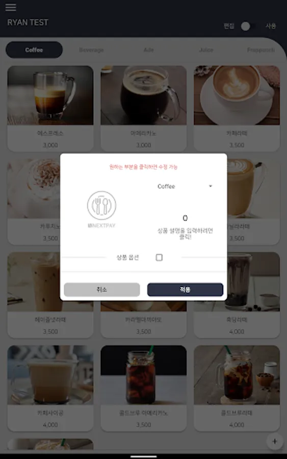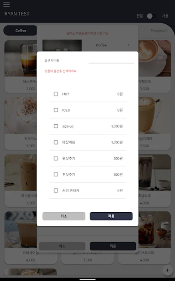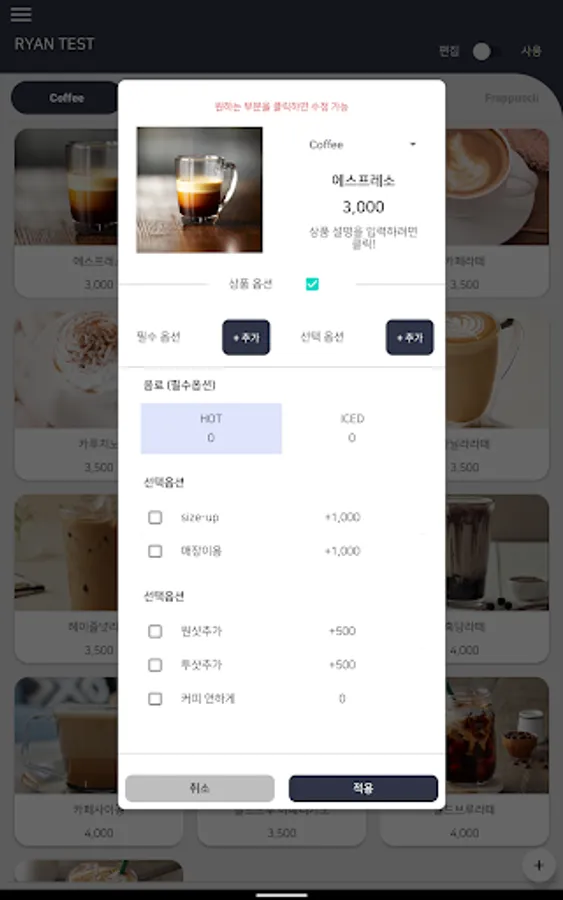 Manage all menu items such as menu name, menu price, and menu options at once!!