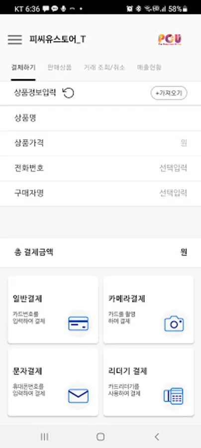 · PCU Store manual payment app supports safe financial transactions in cooperation with large PG/VAN companies.
