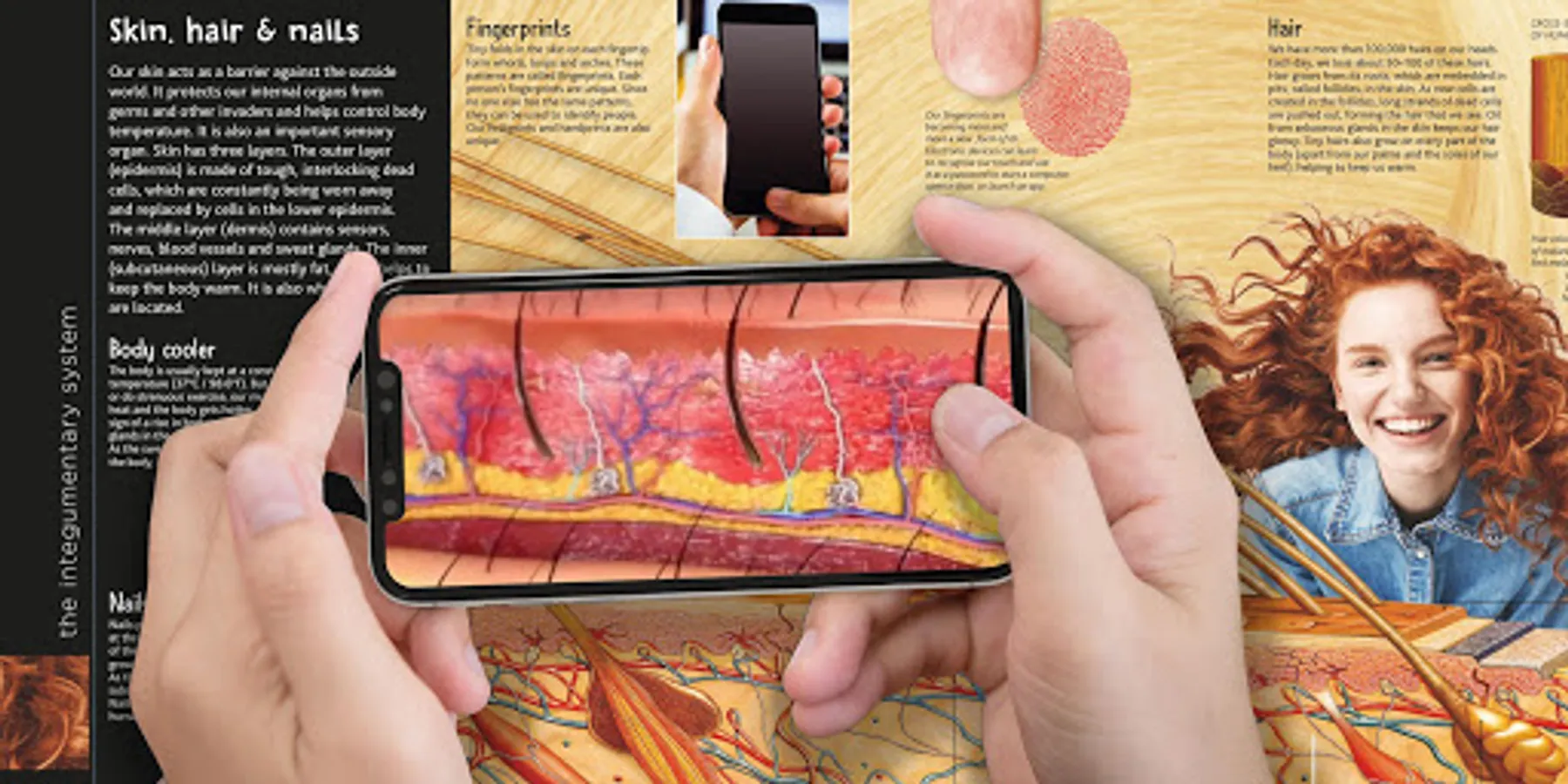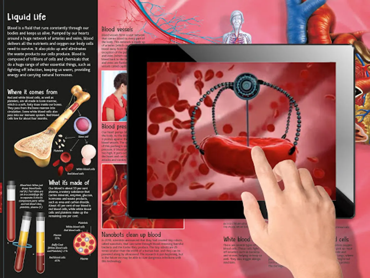 The free Human Body app unlocks more than 60 clips by making eye-contact with the illustrations on the spreads.