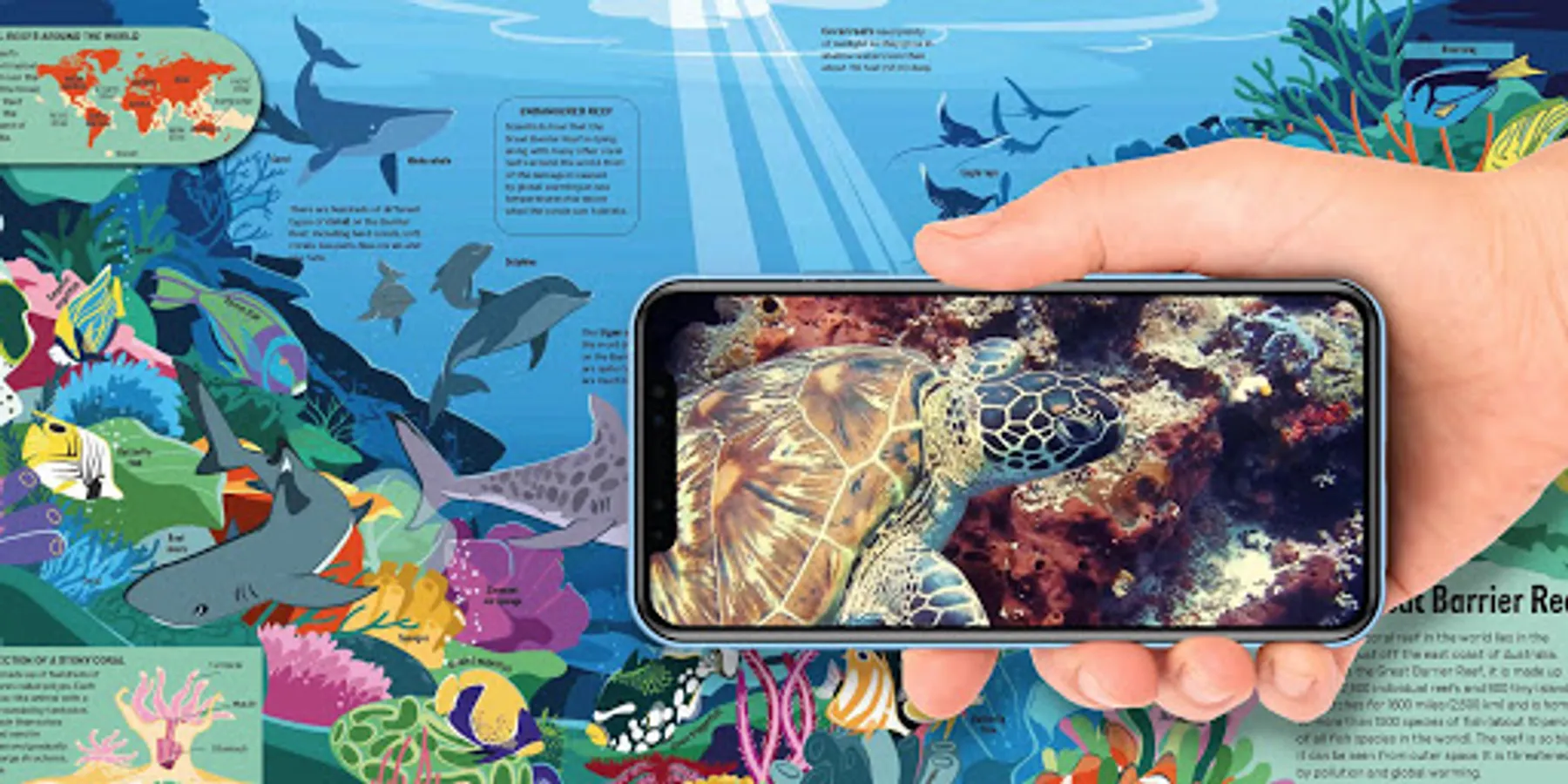 AtlasofSeasAndOceans contains 53 fantastic videos of marine wildlife. Your smartphone or tablet will allow you to play the videos by making eye contact with the illustrations. Just click on the red dots and enjoy the show.