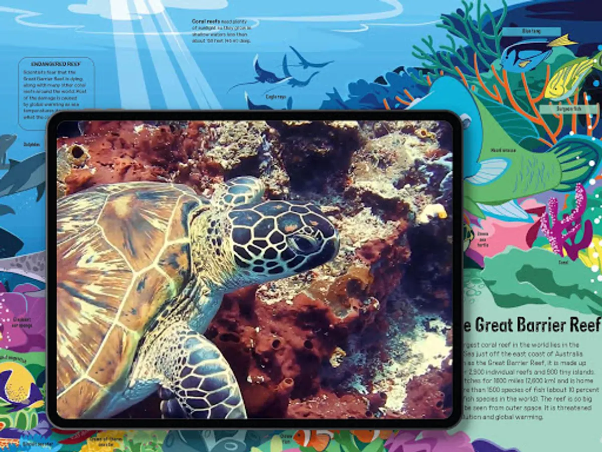 The picture in the iPhone and iPad visuals is a photogram from Tom Fisk / Pexels video on Green Sea Turtles.