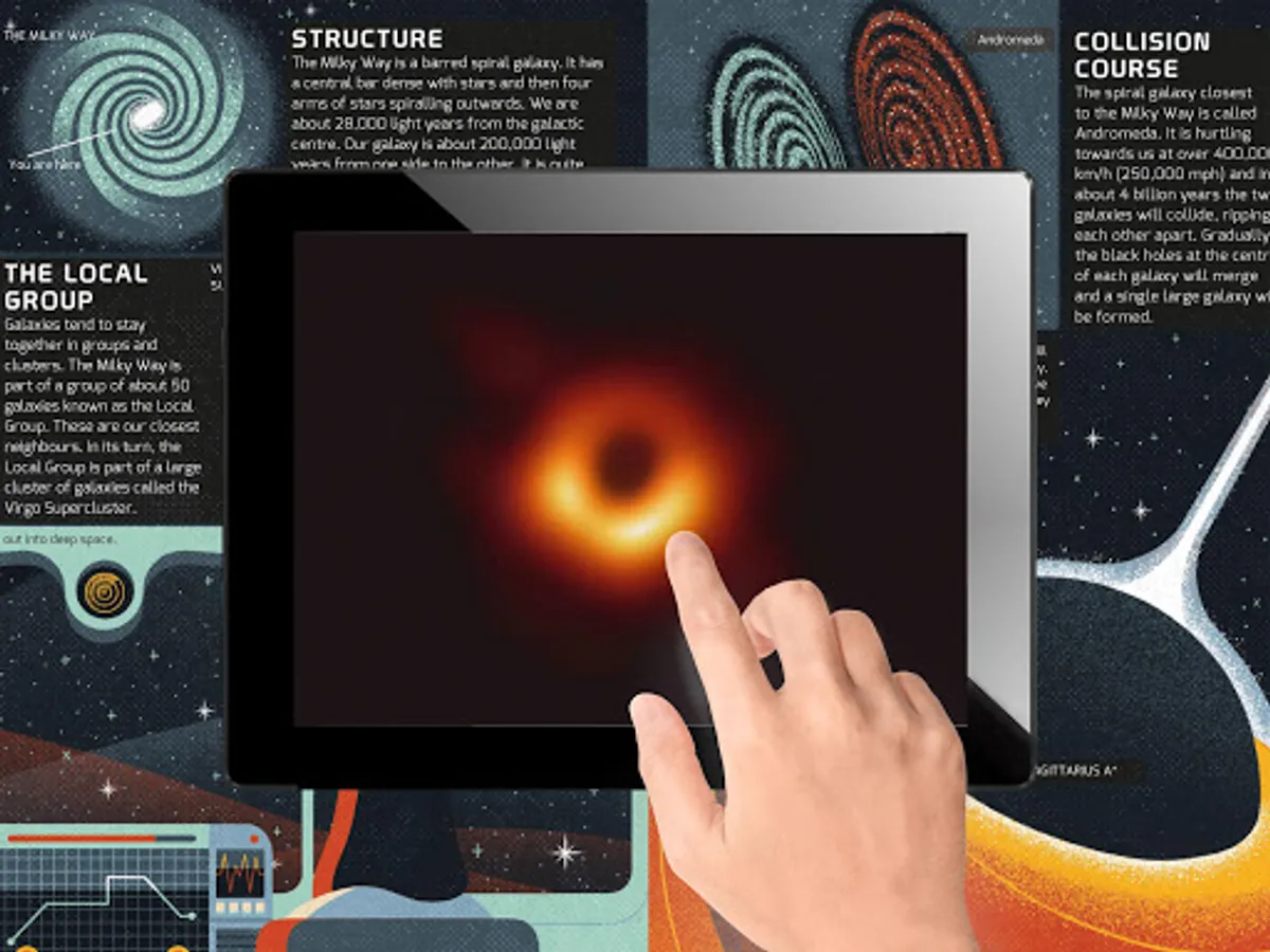 AtlasofSpaceAdventures contains 57 fantastic videos of planets, stars, galaxies and more. Your smartphone or tablet will allow you to play the videos by making eye contact with the illustrations. Just click on the red dots and enjoy the show.