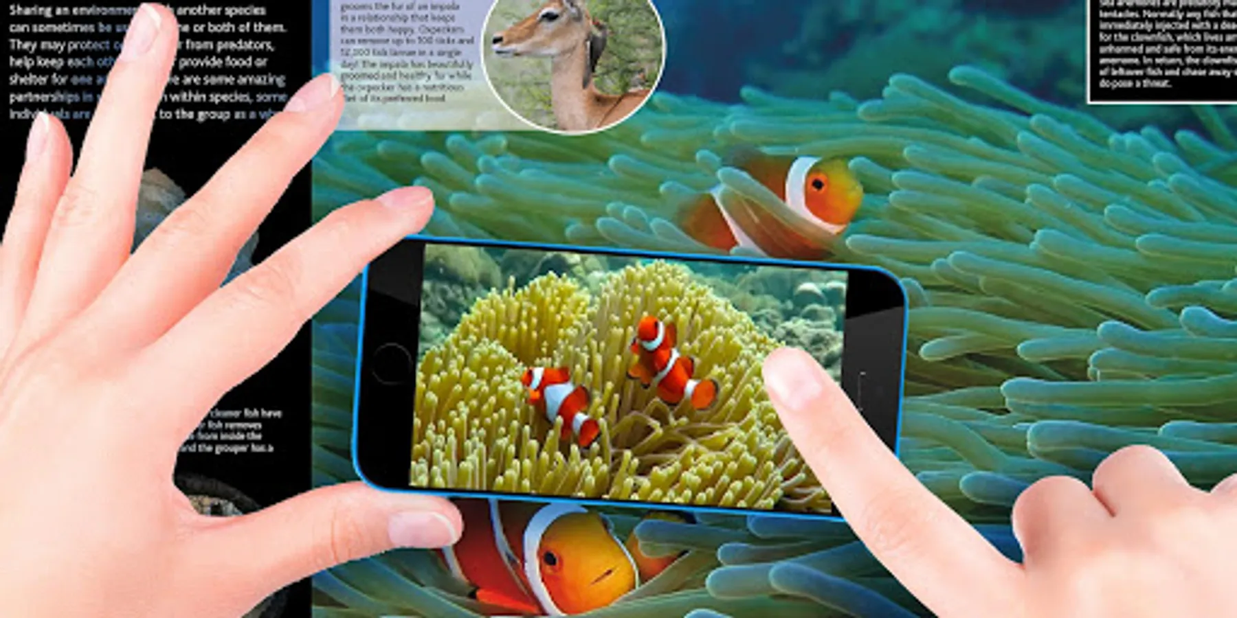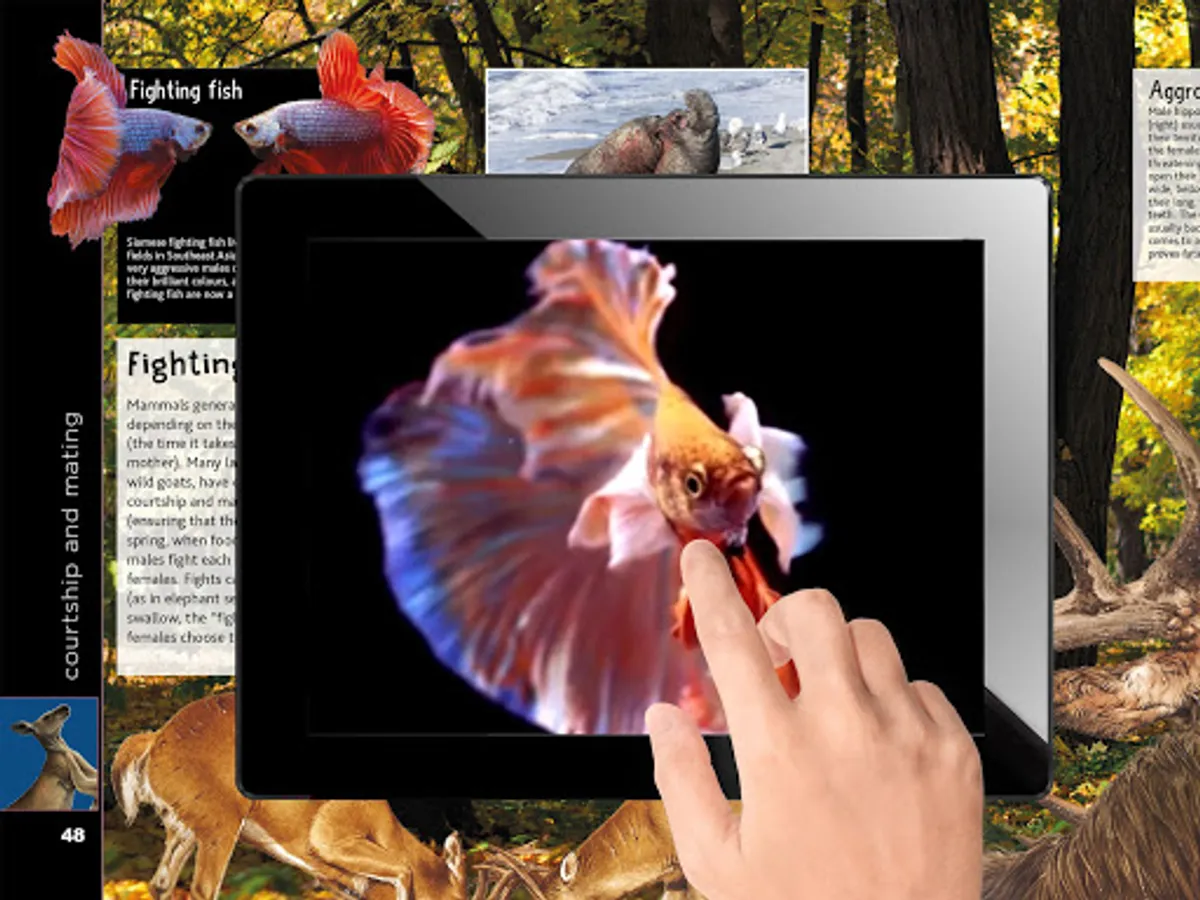 This free World of Animals app unlocks video clips by making eye-contact with the illustrations on the spreads.