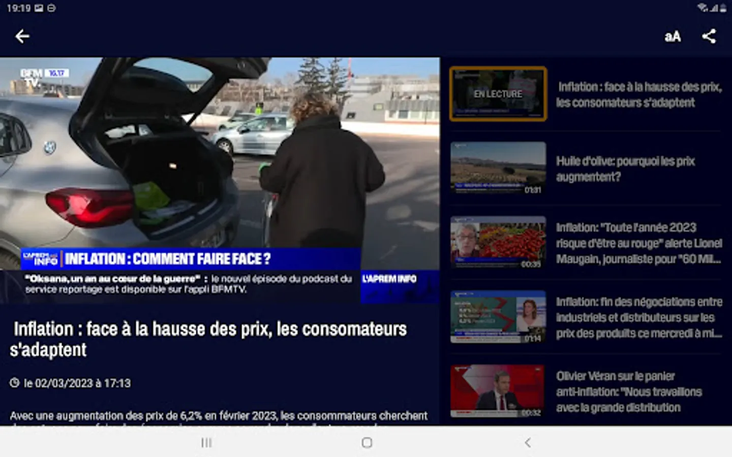 • Replays of BFM Business programs which are accessible in a dedicated section and you just have to scroll through the selection of videos by swiping.