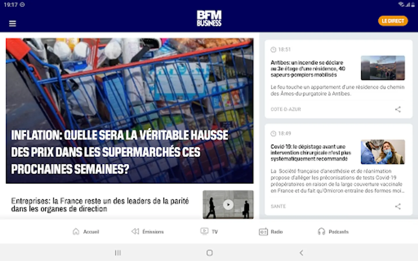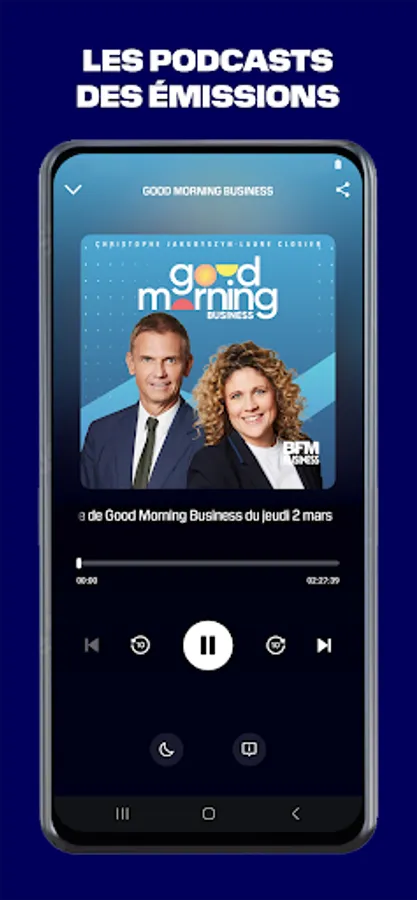 • The BFM Business live radio with a mini audio player that launches at the bottom of your screen and allows you to continue browsing the application while listening to live even when your smartphone or tablet is locked.