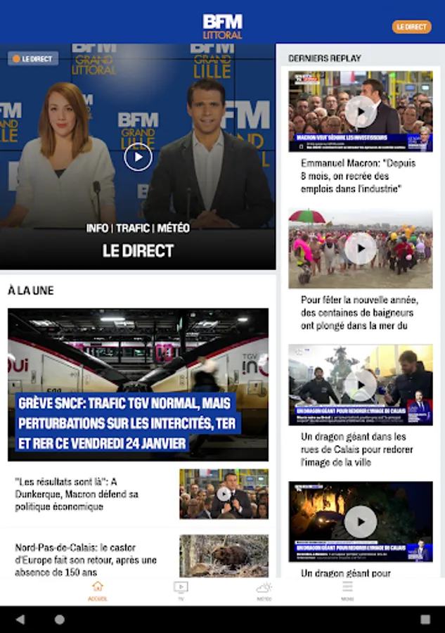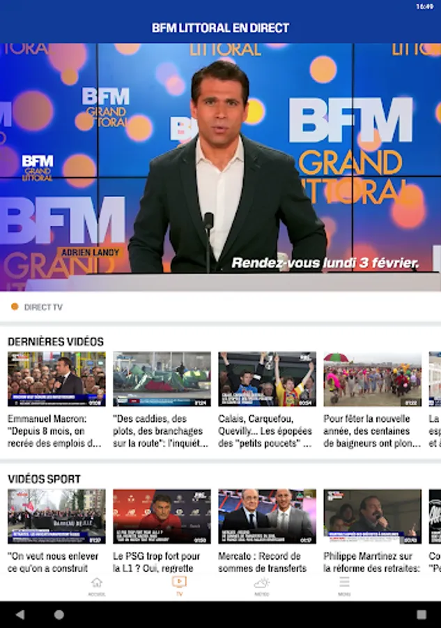 • The menu that brings together the best of BFM Grand Littoral in your application (News, Videos, Sport, Real Estate, Info-traffic, etc.)