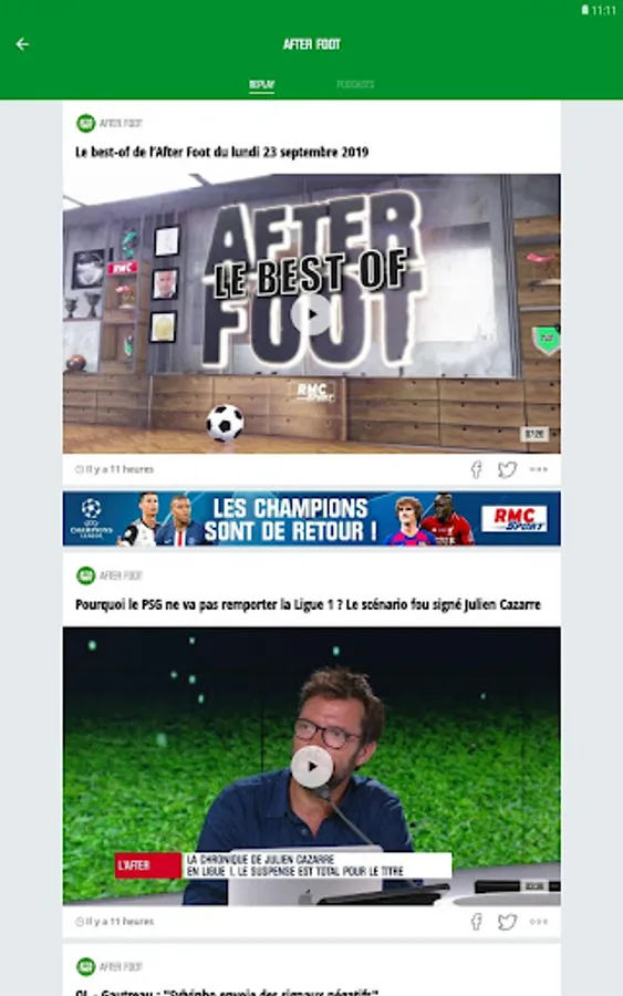 - Finally with “Emissions”, find all the replays or podcasts of your favorite RMC Sport shows