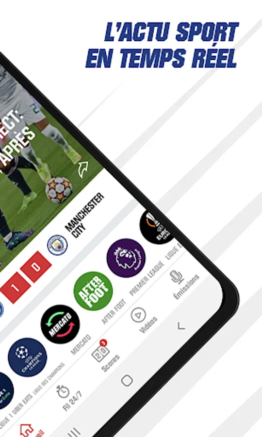 - With "Scores", stay informed at all times of the scores of all competitions thanks to the section