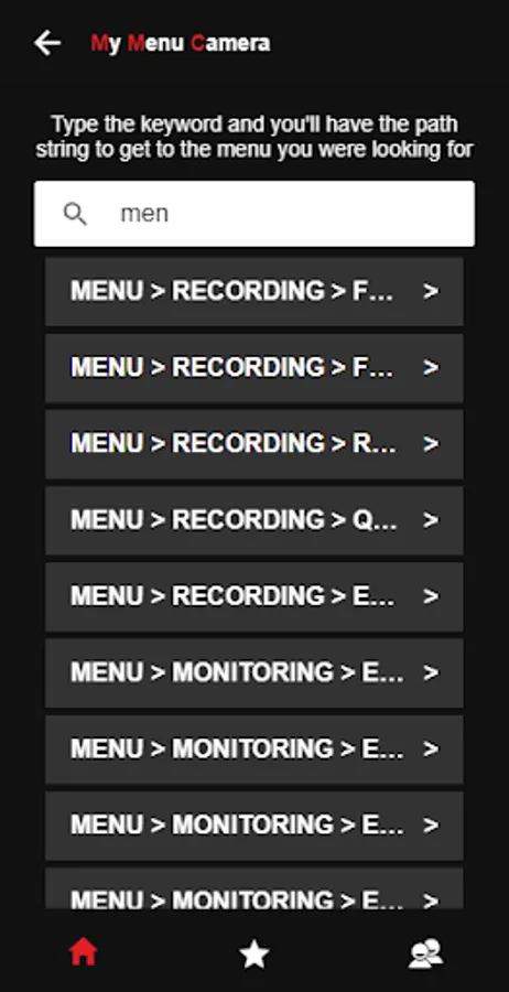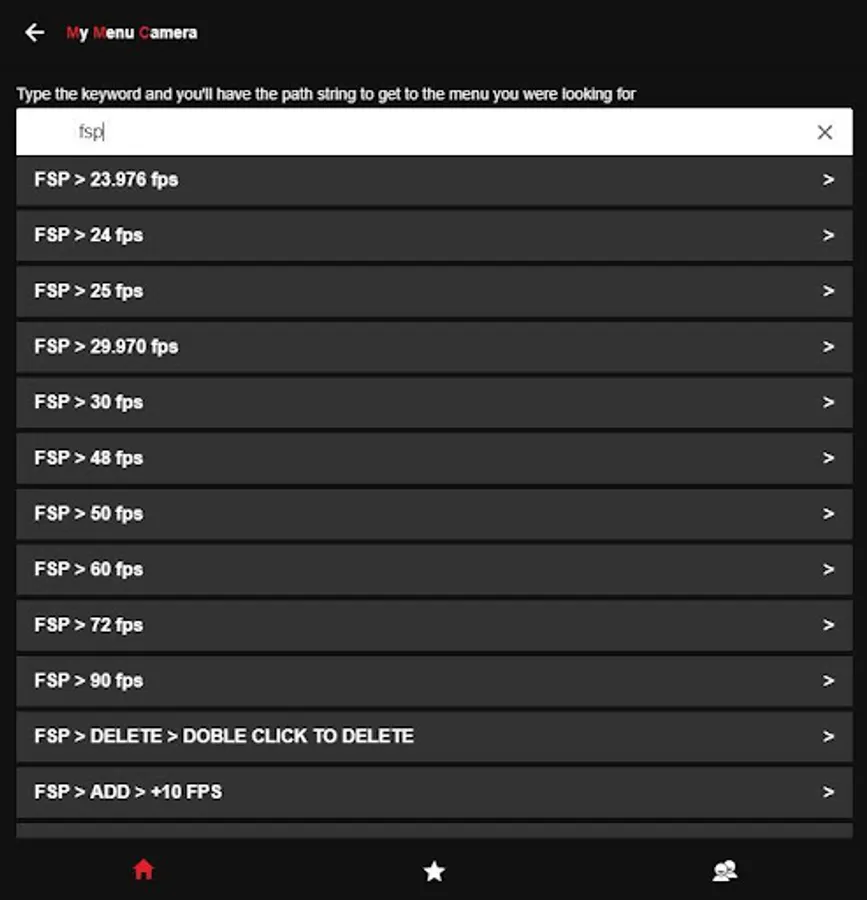 A valid aid for users of professional video cameras. Integrated advanced search system to find the location within the menu as quickly as possible in the setting you want to use