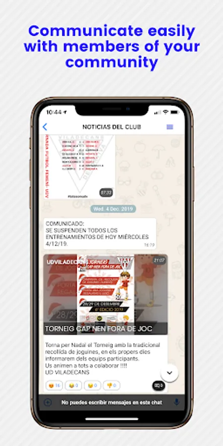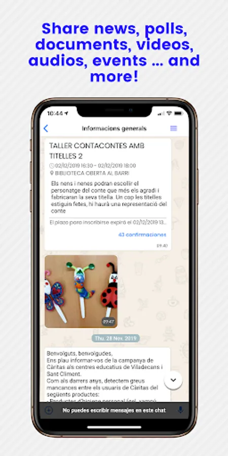 MULTIMEDIA: Send texts, images, surveys, documents, news, create events with registration management and much more!