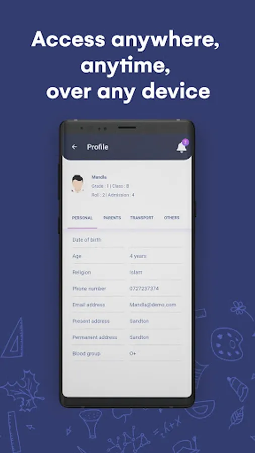 The solution also comes with profiles for each Parent, Teacher, Principal and staff.
