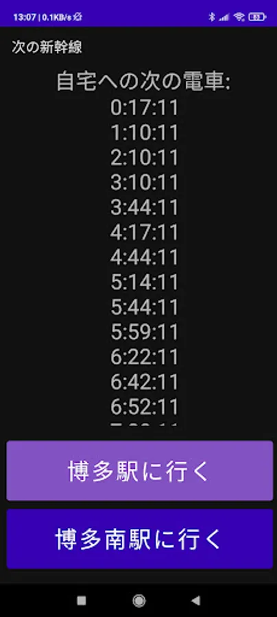 An App to get the time for the next Shinkansen trains from Hakata Station to Hakata Minami Station and viceversa for that day.