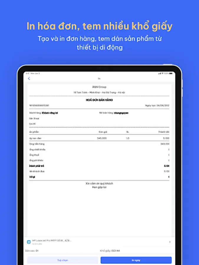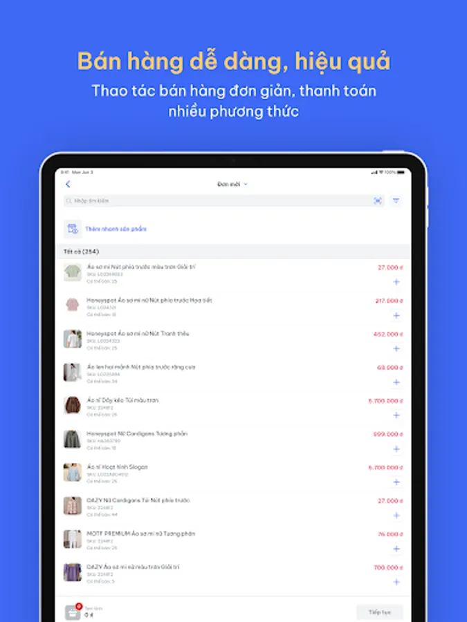The sales interface is designed to be simple, easy to use, with friendly customization and usage habits, helping employees create sales orders in just 30 seconds, optimizing service time to make customers satisfied. without having to wait long.
