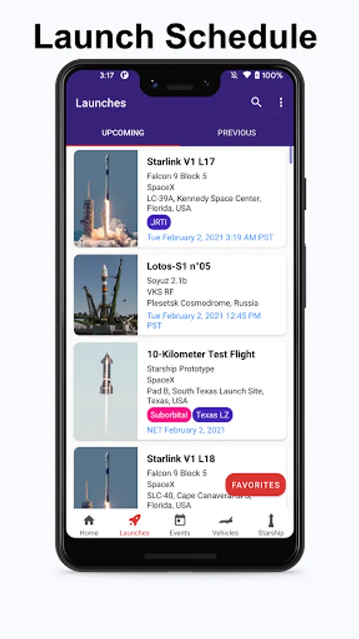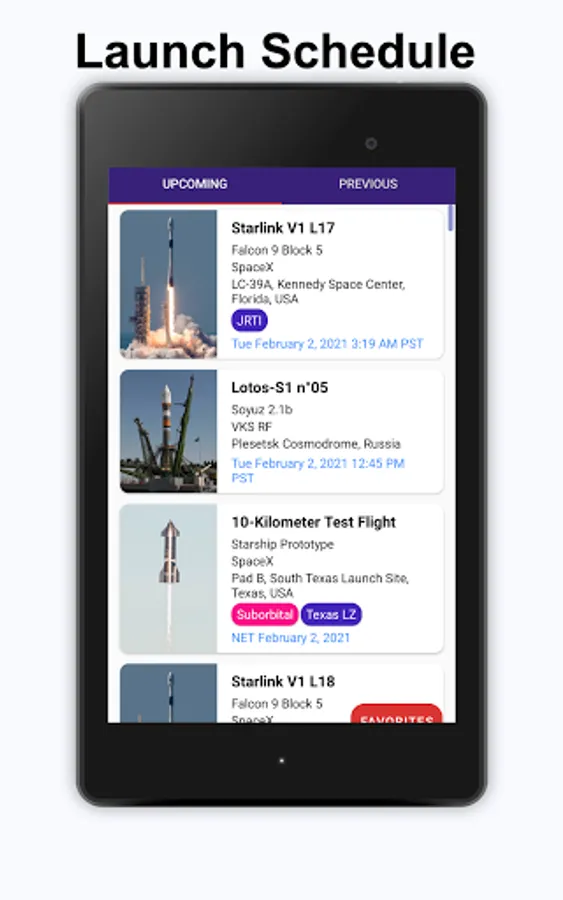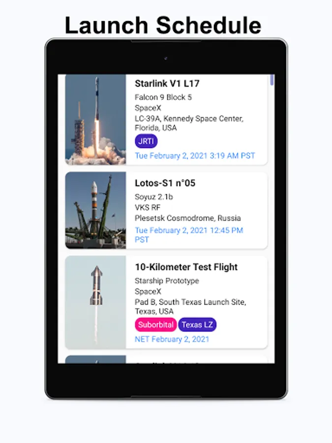 - Links to live streams of upcoming launches and videos of past launches.