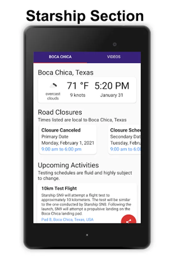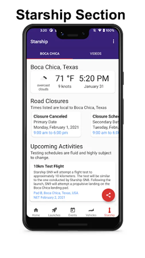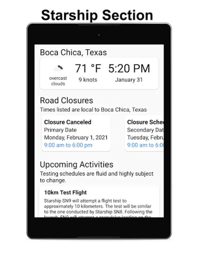 - Dedicated section for tracking Starship activity in Boca Chica