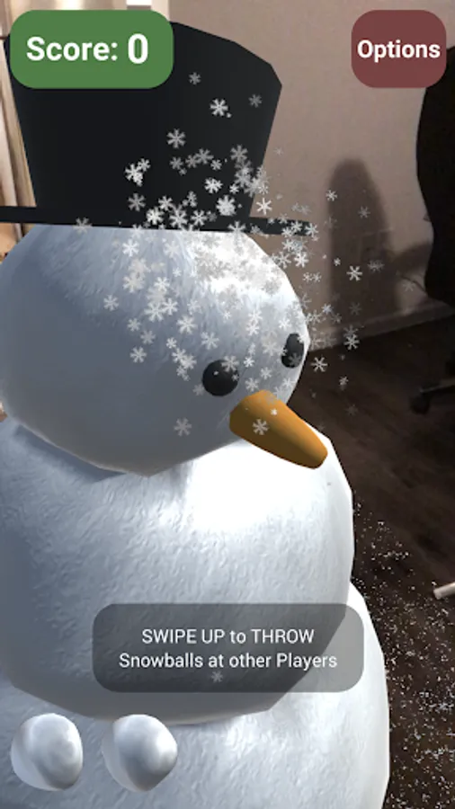 - Swipe up to throw snowballs.
