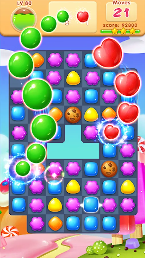 In Candy Smash,you will find colorful candies, cool ice,honey, gummy bears,mdelicious cup cakes and sweet chocolate cookies! Which flavor is your favorite?
