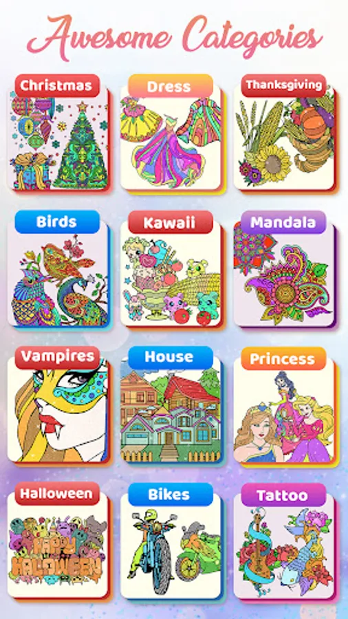 Its the right time for you to express your creativeness with this adult coloring book and make the masterpiece of art. With this color therapy app you will forget all your problems and worries in a blink of an eye. Express your creativeness with the sandbox coloring and make the masterpiece of art. Do not miss the opportunity to share it with friends and family or set it as the wallpaper.