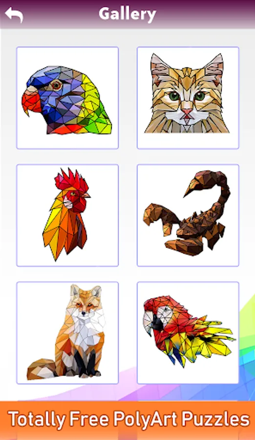 If you are looking for a relaxing and fun way for your creativity to flow, you have found it.Simple geometric shapes placed side-by-side or by numbers.Let go of your worries,ease your mind and get into artistic mood with Animals Poly Art Color By Number.