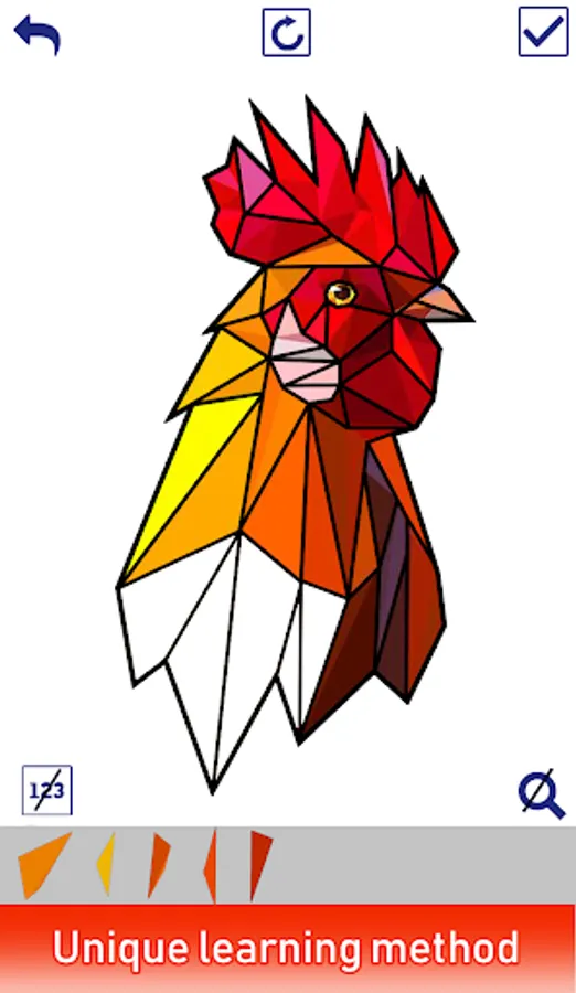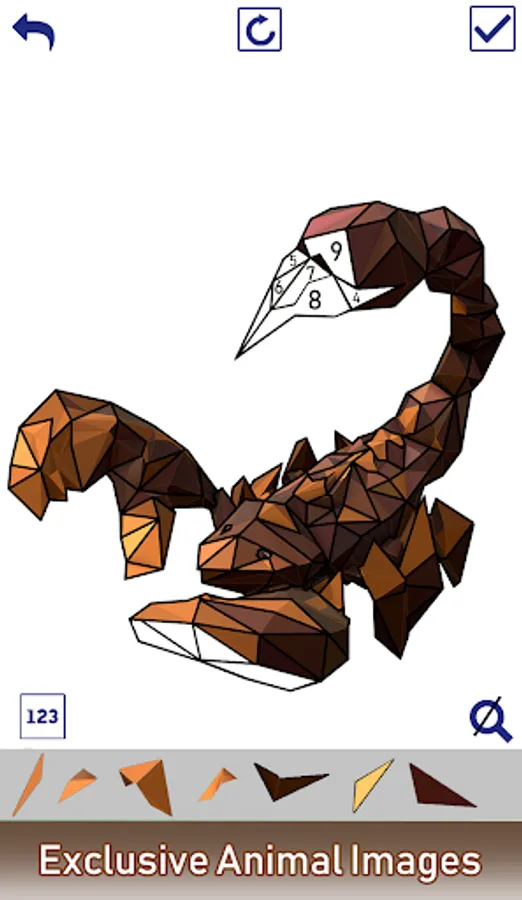 Start polygonal drawing animals color by number.Poly Coloring Book promotes relaxation, attention, concentration and better management of stress.Pick your color and start painting with best fitting lopoly pieces.