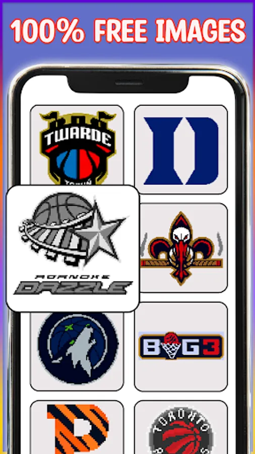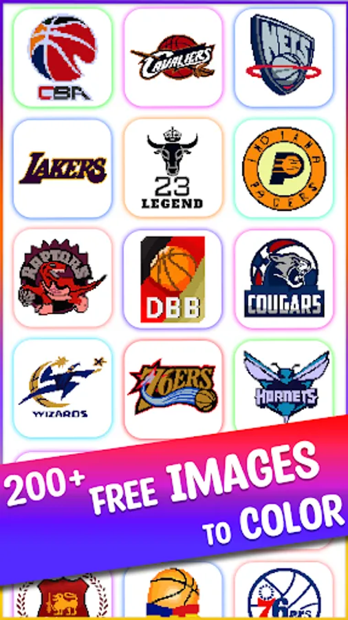 In this application, you can learn how to draw and color basketball logos anti-stress pixel pictures. Coloring the team's logo and favorite player by number is a great way to release stress.