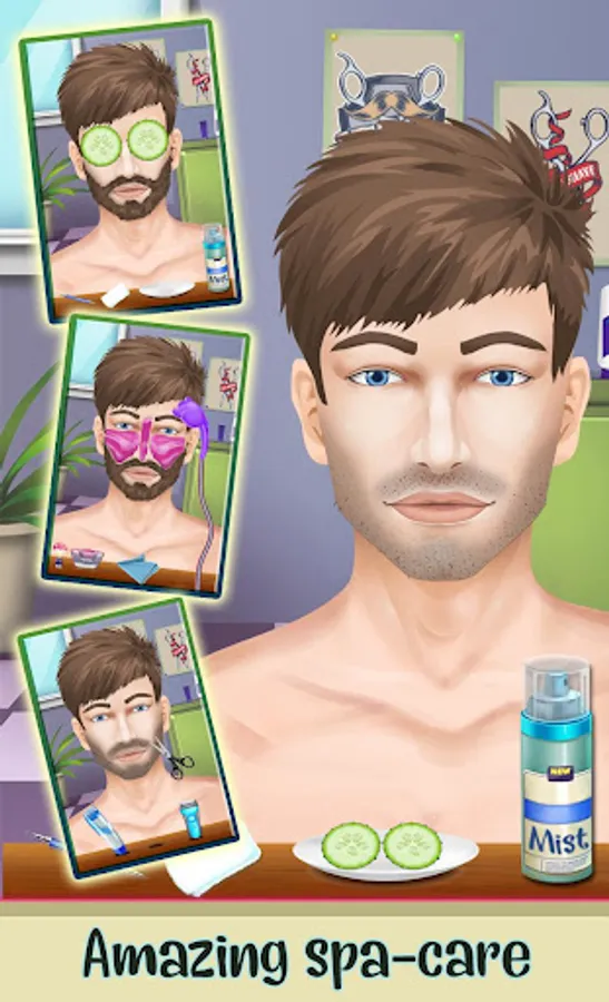 Everyone wants to look pretty and your spa has the tools to do it. If you ever dreamed to make great beard styles, then this barber salon is made exactly for you! Try on the image of a crazy barbarian, shave beard, make beard styles and have fun playing barbershop mustache and beard styles.