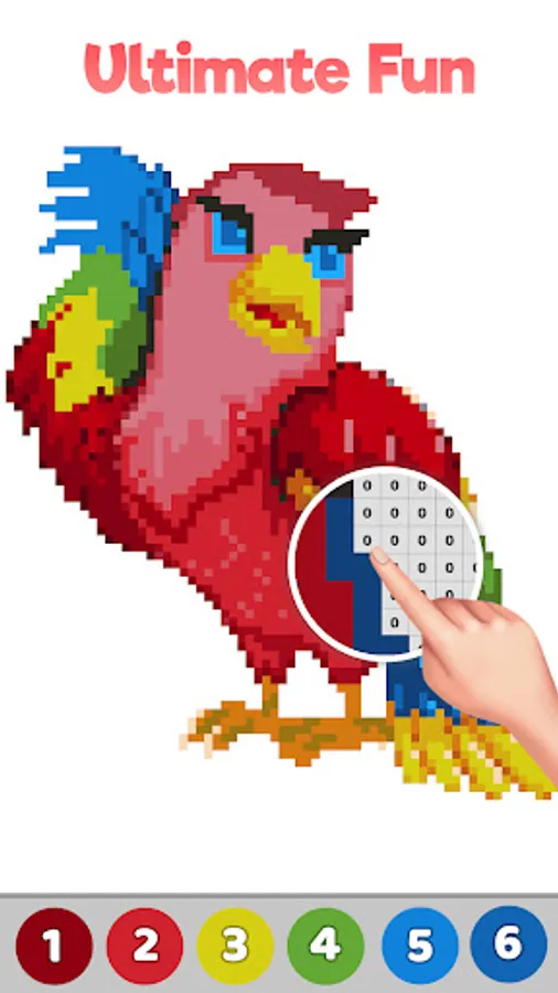 - No stress of picking up colors, just relax and pixel art color by number.