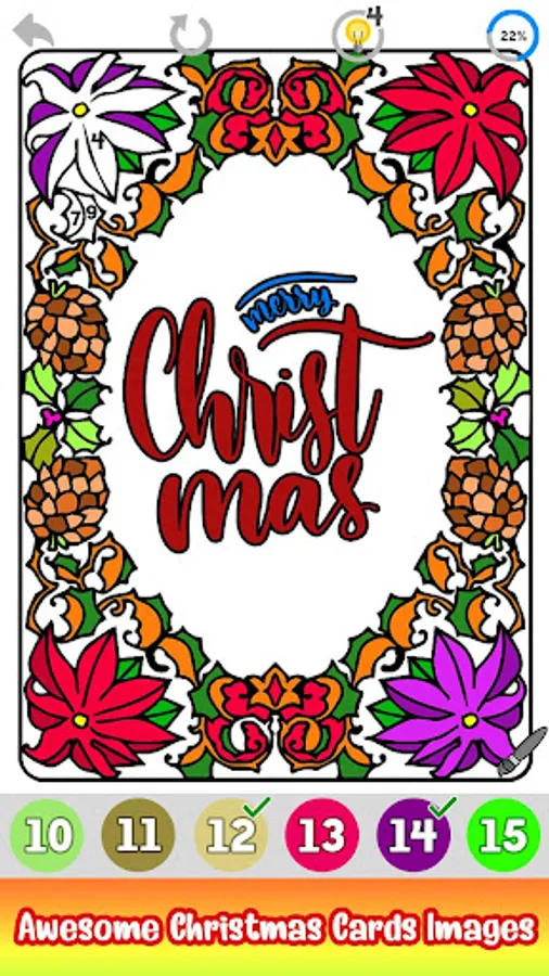 - Choose your favorite greeting card and colors like sparkly glitters, crayons, solid, oil paint, and watercolor by numbers with the selected coloring style.
