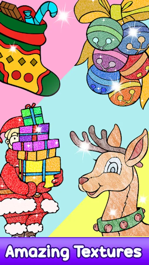 Coloring can also be used as an educational game by nursery schools.Every little girl loves the color hearts, Santa, flowers, baubles, bells and Christmas gifts and boys love to Color sleds,sleighs, reindeer, snowmen, elves and Santa .The biggest attraction is coloring with christmas sounds!