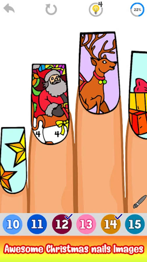 Become the best fashionista manicure beautician on this Christmas eve. Design and create your own Christmas nail paint makeover and become the perfect nail design master. It's a great time to show your inner artist and creativity skills with super realistic Christmas Nails Color by Number.