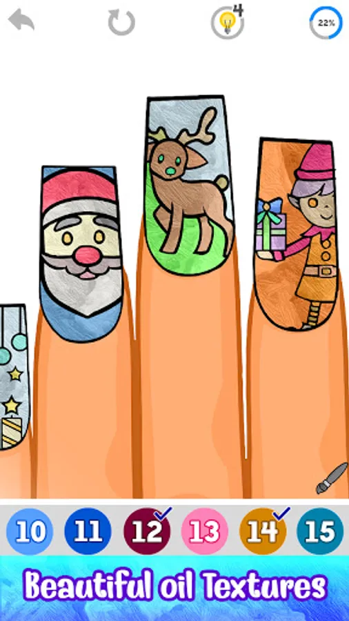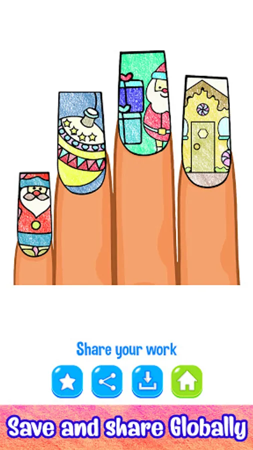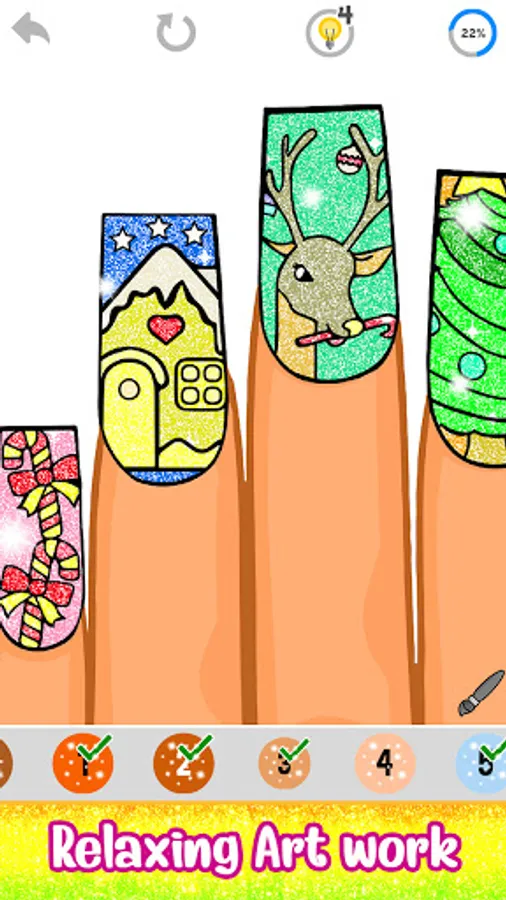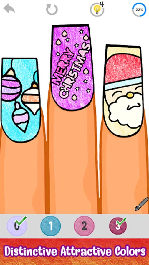Create unique nail art design using your creative beautician skills, start nails makeover now and make it a remarkable one. You will never get bored with this perfect christmas nail art and spent hours in entertainment. Time to show your inner artist and creativity skills with super realistic nail color free game. Fulfill your dream to be the perfect manicurist with one of the best nail art coloring game.