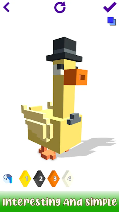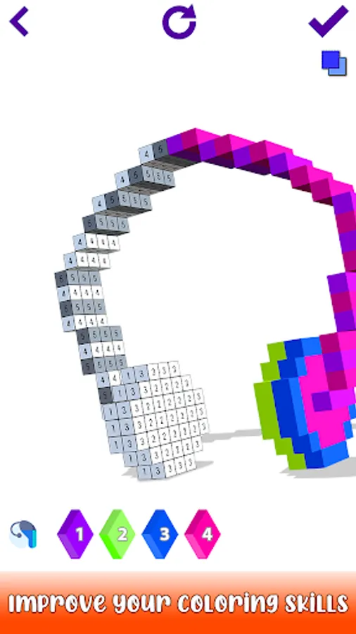 Choose from the variety of 3D templates, just follow the numbers and fill in the colors. Rotate the screen to color in different dimensions.
