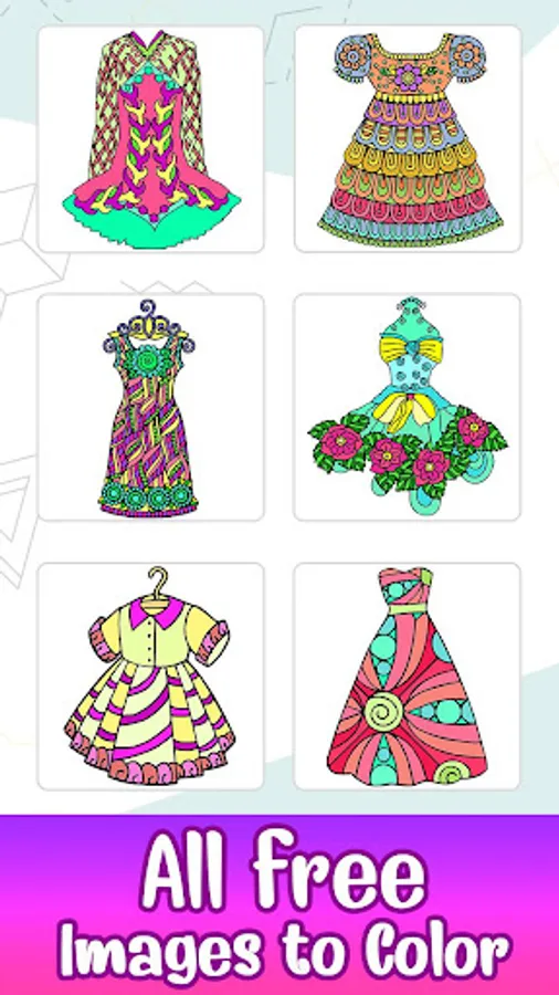 Choose from a wide range of trending dress pictures and color the ones you like to create your artworks. This app allows you to color the dresses & expressions according to the imagination. Paint, doodling and develops creativity with the fashion dresses coloring book.