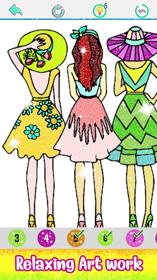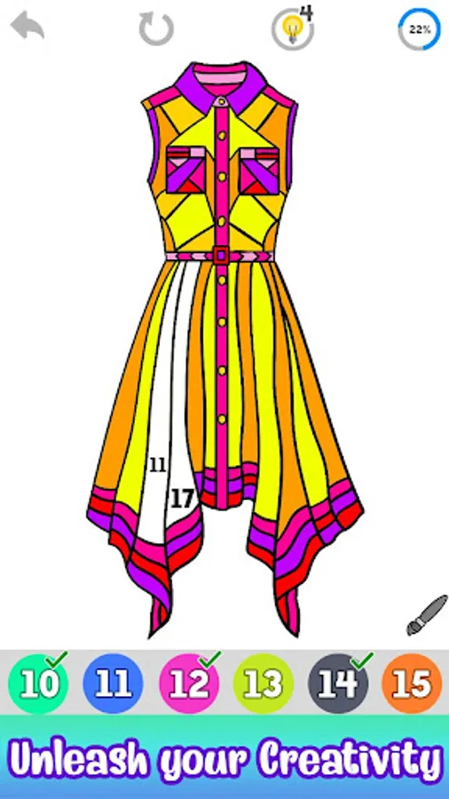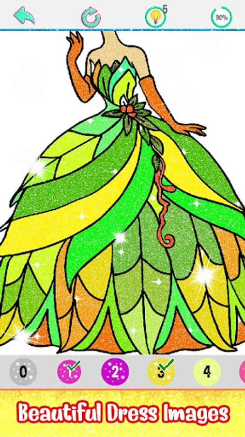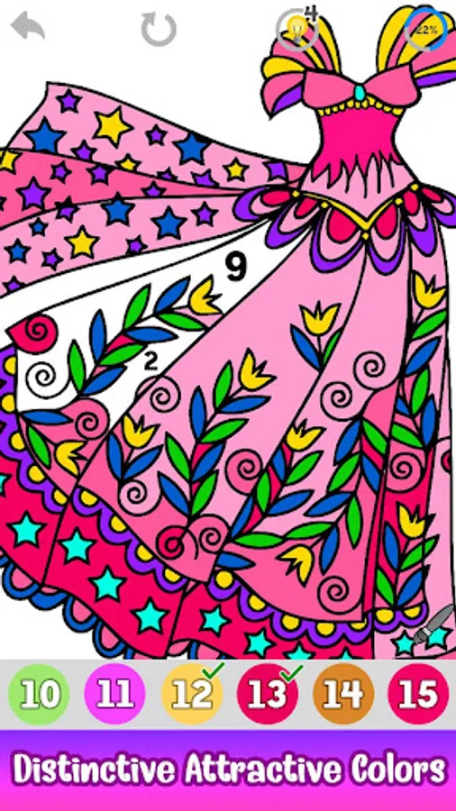 Be creative with amazing paint art & color your problems away with dress coloring. Dresses Color by Number helps you to color different girl's dresses with the help of solid colors, glitters, and crayons. It's an excellent way to pass the time. Calm down and enjoy hours of fun and relaxation, develop your concentration and accuracy. Choose from a wide range of pictures and color by number the ones you like to create your artworks!