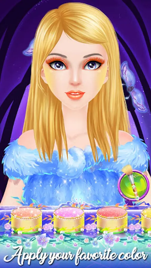 - Tap to choose a hairstyle, eye color and put the makeup on with amazing suited colors by tapping with your fingers.