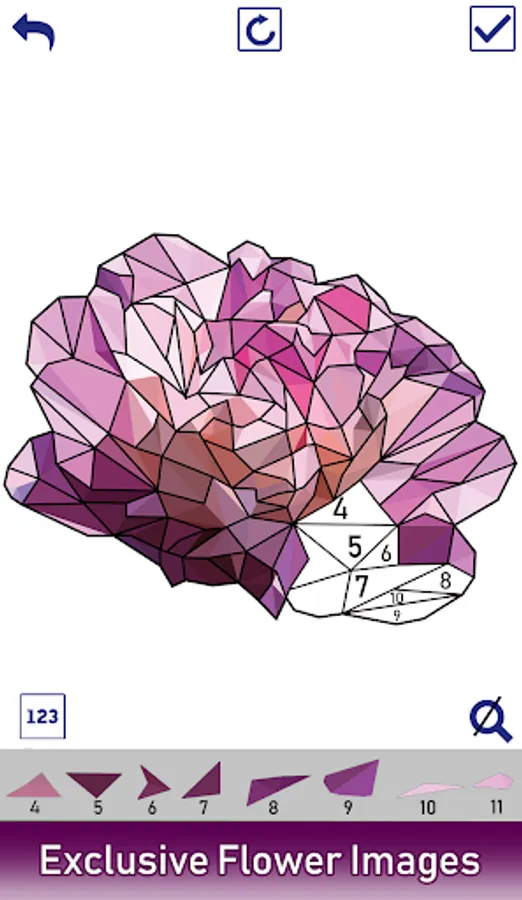 Flowers Poly Art Color By Number is based on a very new and unique idea of bringing art and puzzles together just like heart and mind coming together.With this No. color game you can enjoy latest and majestic artworks with unique color by number pattern.You have to put colors into the images while solving the jigsaw puzzles.It’ll bring you the satisfaction of solving a puzzle and filling color at the same time and gives you a pleasure of making your own master piece artwork.