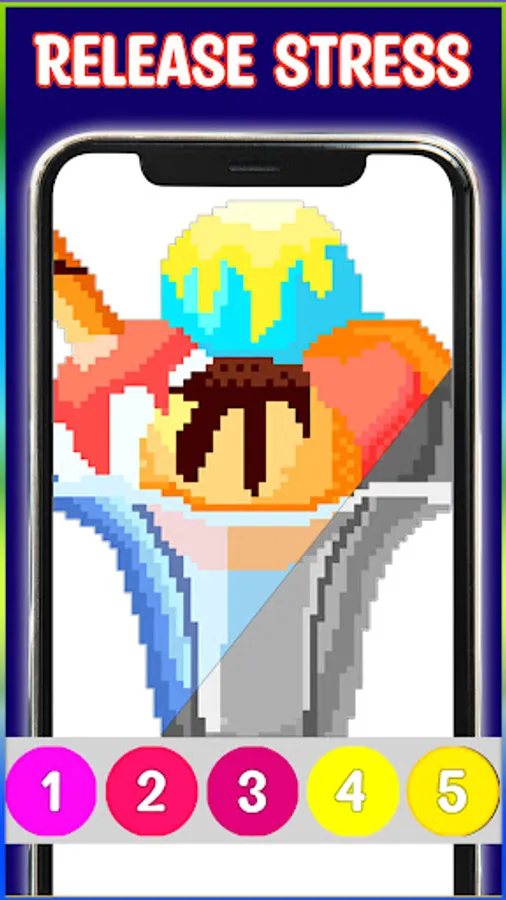 - Zoom in the food image and start coloring by tapping on the same number paint artworks.