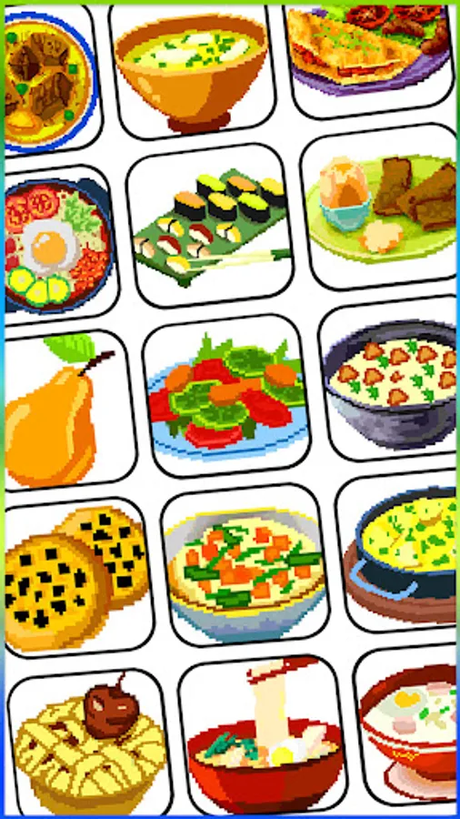 In this application color your favorite foods from American foods to Japanese foods and decorate your pixeled artworks. Enjoy coloring different flavor shades by tapping on the pixel boxes. Take your culinary creativity to other levels in this relaxing color by number app. We have a lot of cute pixel art food, which includes fast food, sweets, fruits, desserts and more, for all lovers of food art.