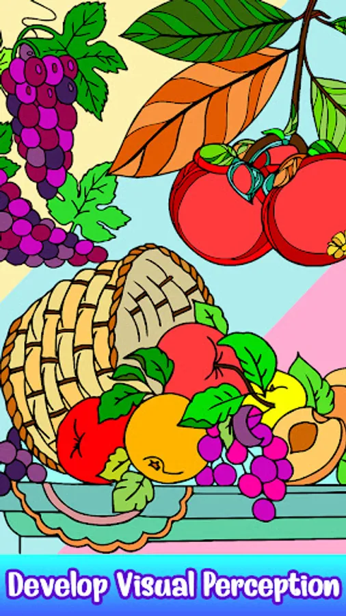 Simple and intuitive, you have lots of fun for hours! This educational game will help you to improve skills in problem-solving, logical and cognitive skills, concentration, and memory. Fruits coloring is super stress relieving and calming for families. Just relax and enjoy a session of nice and comfy color therapy.