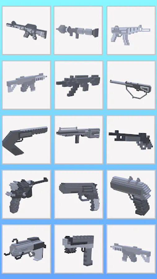 - Color 3D models of weapons, made in a cubic style.