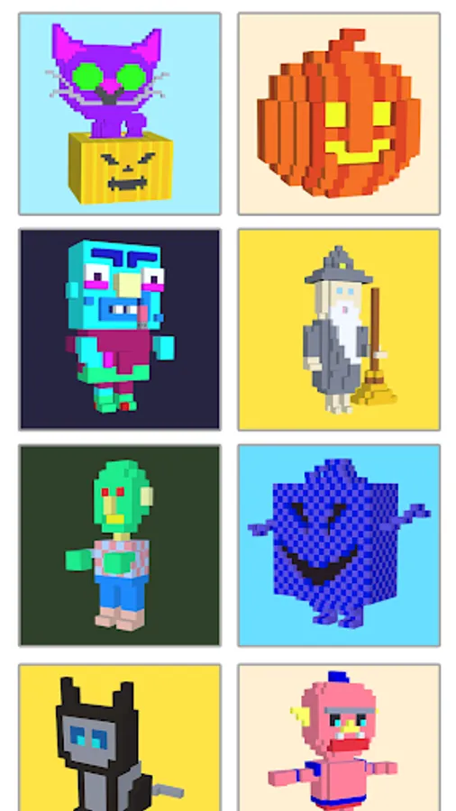 If you feel stressed, you can try a voxel number coloring book because it has an anti-stress effect. So you can release your problems in a meditative art. You will find so many fascinating pictures in it like 3d pumpkins, witches, ghosts, vampires, etc. Every fan of Halloween will love painting and color pages of this cool halloween 3D voxel art game.