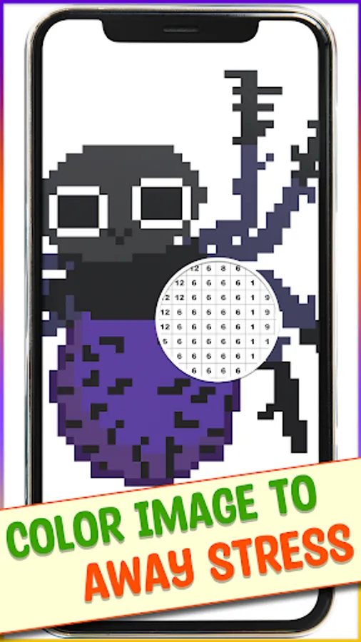 Painted by number images turn out to be bright, detailed, as the palette in Halloween Number Coloring is big enough. The application is deprived of any panels of settings, menus and other things. At startup, one page contains a list of all colorings, separated into categories.